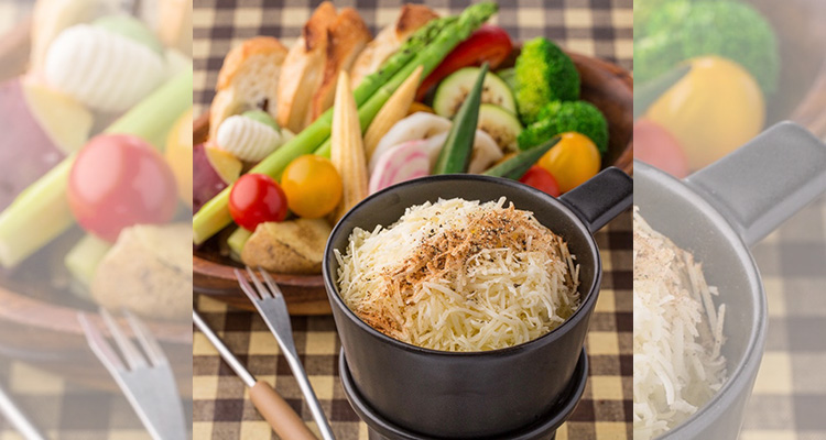 チーズソムリエと野菜ソムリエがこだわったチーズフォンデュ。 世界のチーズのフォンデュと農家のお野菜がマッチ! 堪能してください。